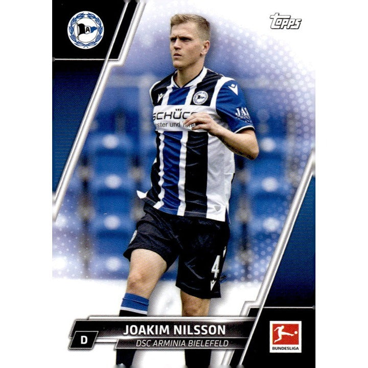 This sports trading card features Joakim Nilsson from DSC Arminia Bielefeld in the 2021-22 Topps...