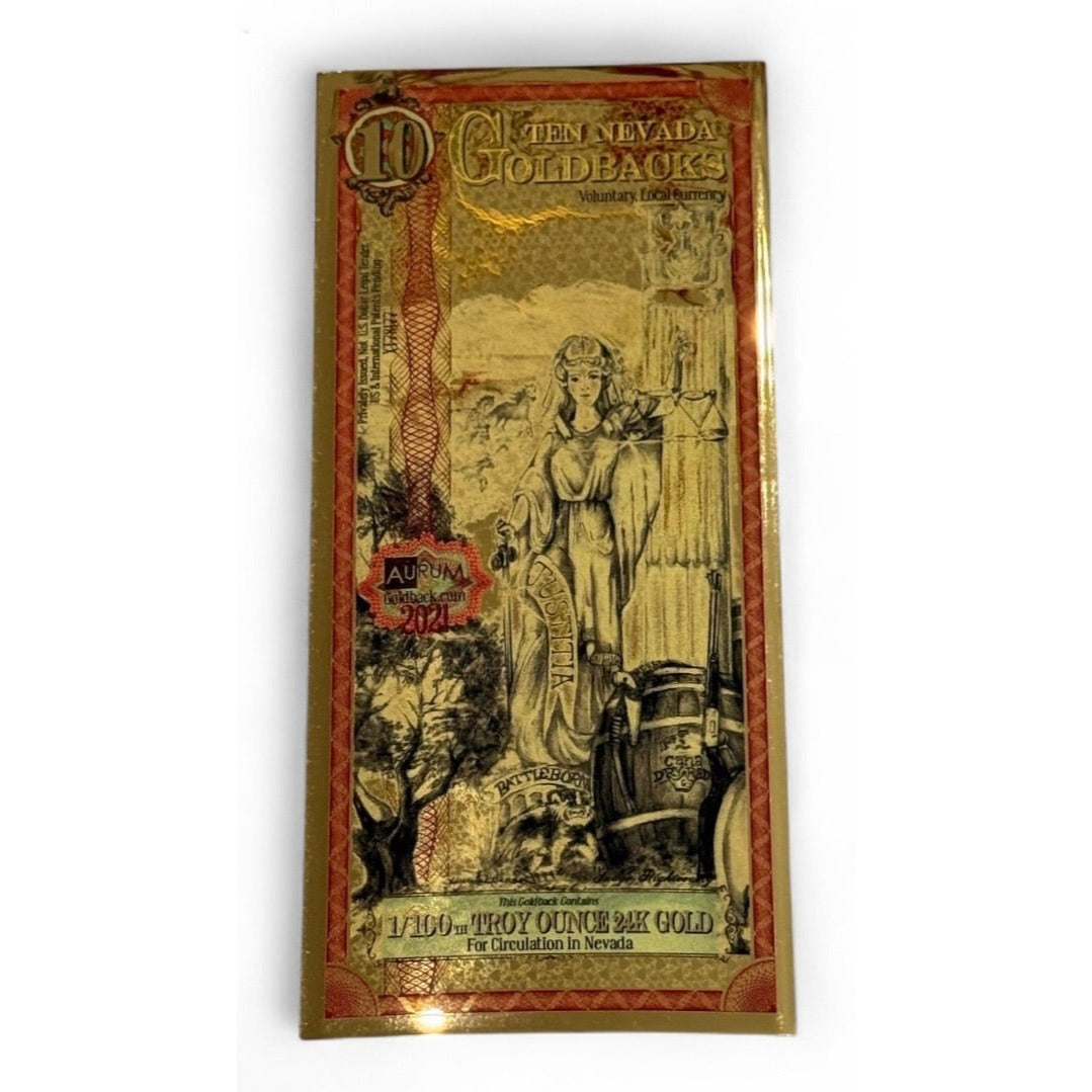 Beautiful 2021 Nevada 10 Goldback note containing 1/100 troy oz of 24K pure gold. 1/100...