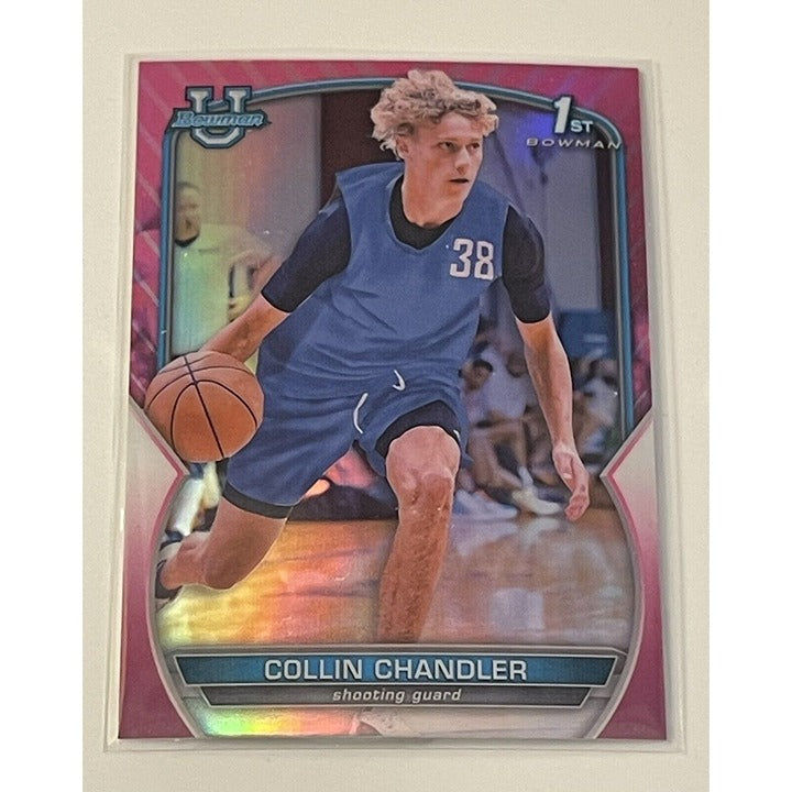 This 2022-23 Bowman University Chrome trading card features the highly anticipated rookie Collin Chandler from...