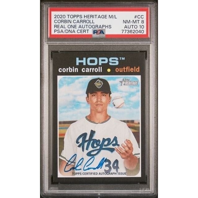Corbin Carroll 2020 Topps Heritage Minor League Real One Auto #ROA-CC Blue PSA 8