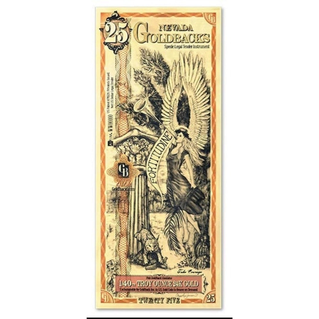 Item Details • Denomination: 25 Nevada Goldback • Year: 2022 • Metal Content: 1/40 Troy Ounce of .9999 Fine 24K Gold...