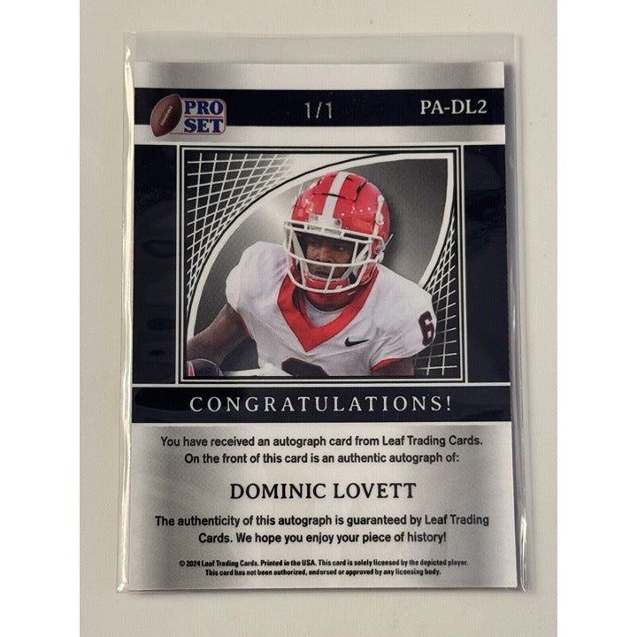 1/1* Dominic Lovett RC 2024 Auto Leaf Pro Set Metal Silver Prismatic UGA #PA-DL2