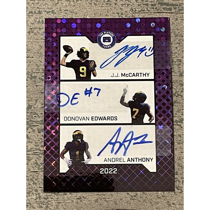 1/1* JJ McCarthy-Donovan Edwards-Andrel Anthony Auto 2022-Players Trunk Go BLUE*