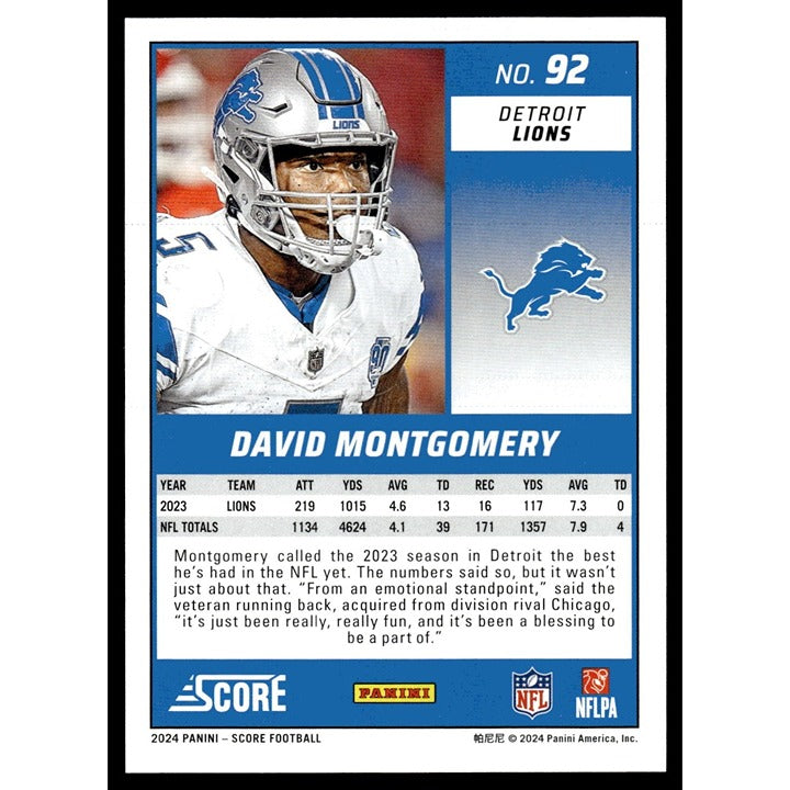 13/100 2024 Score NFL Football #92 David Montgomery Scorecard Detroit Lions MINT