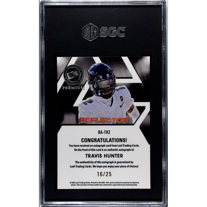 16/25* 2024 Leaf Press Pass Football Travis Hunter Silver Auto #BA-TH2 - SGC 9.5
