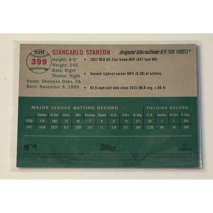 18/50* Giancarlo Stanton 2023 Topps Chrome Platinum Gold Refractor* YANKEES #399