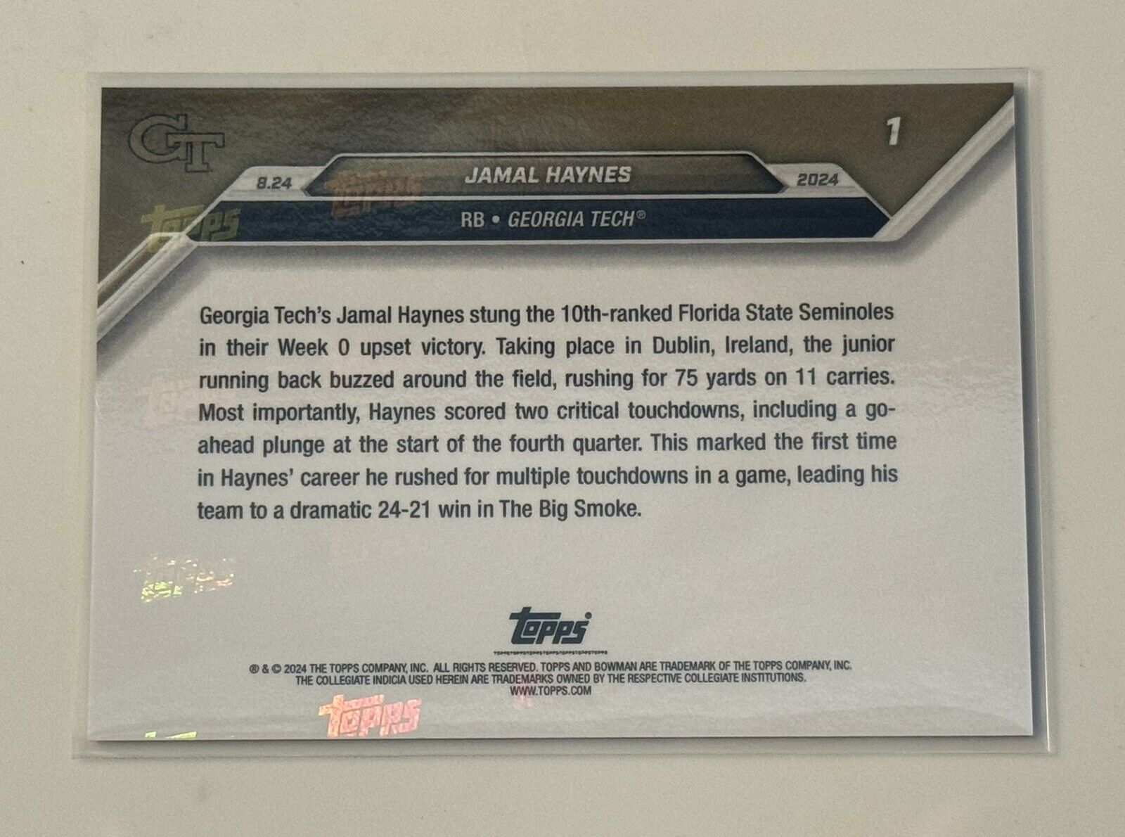 19/49 Jamal Haynes RC - 2024 Bowman U Now Football Card 1 Georgia Tech Beats FSU