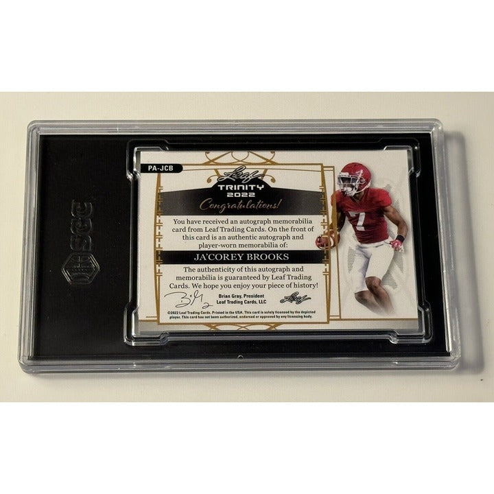 19/99 2022 Leaf Trinity Ja'Corey Brooks Silver Rookie Patch Auto Alabama SGC 9.5