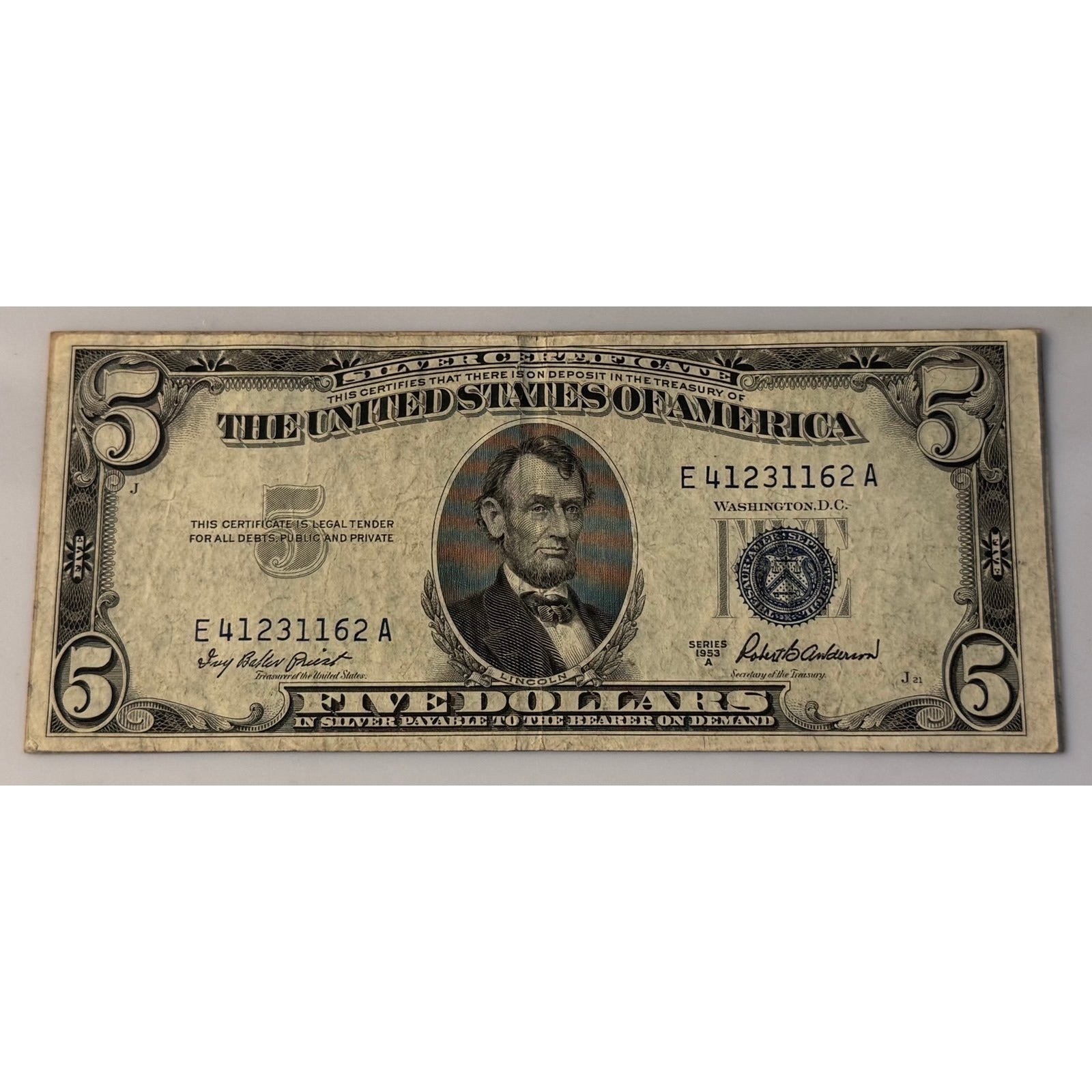 *1953**! A $5 Silver Certificate Blue Seal Priest Anderson Circulated US Note**!