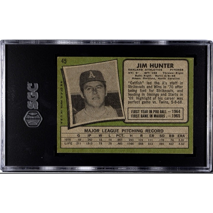 1971 Topps Baseball - Jim “CATFISH” Hunter MLB Athletics HOF* Card #45 - SGC 4.5