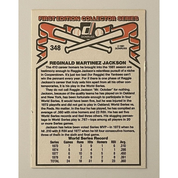 1981 Donruss New York Yankees Baseball Card #348 Reggie Jackson Vintage MLB HOF