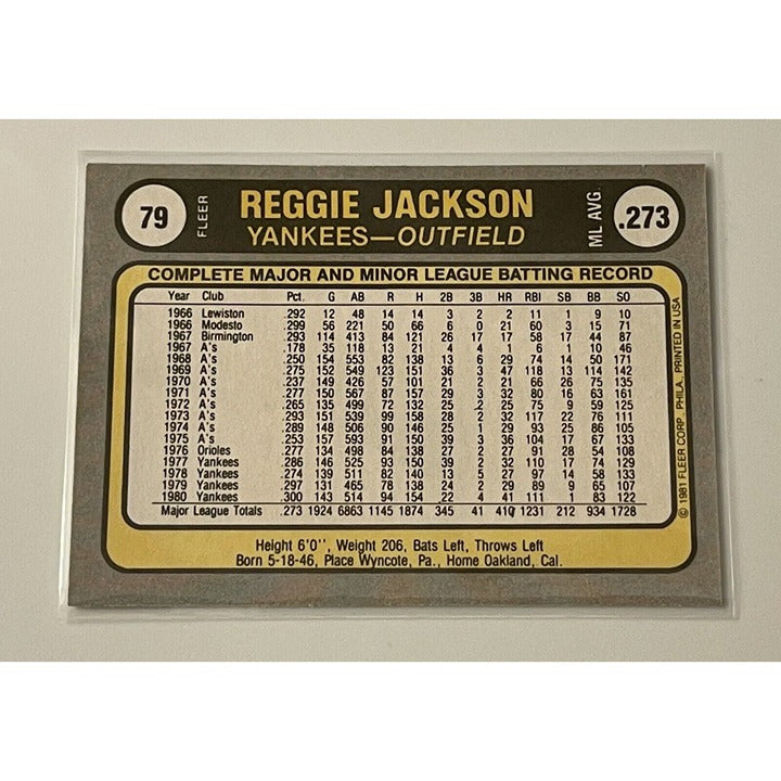 1981 Fleer Reggie Jackson MLB New York Yankees With Bat - Baseball Card #79 HOF*