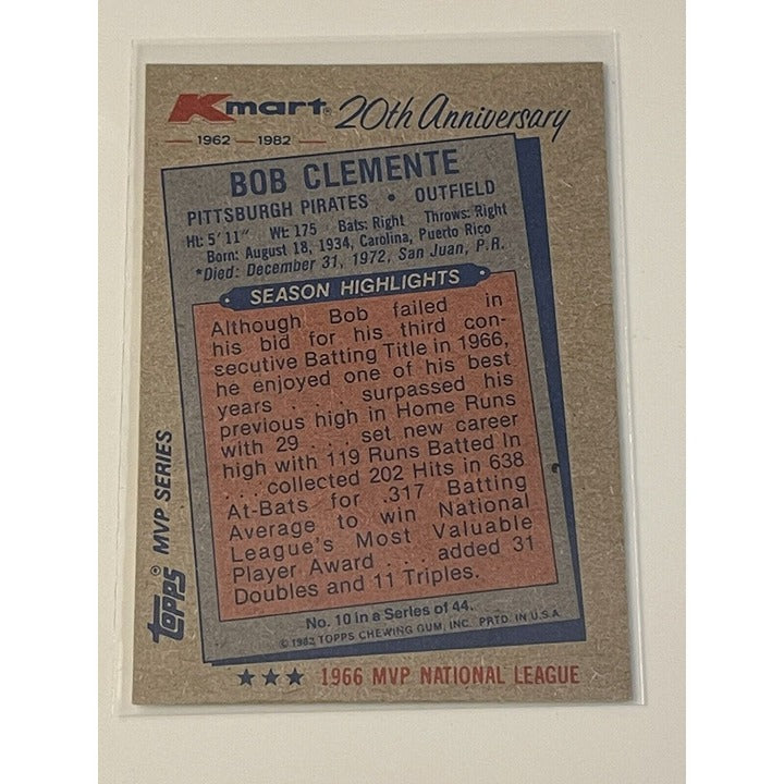 1982 Topps Kmart Roberto Clemente Baseball Card #10 MLB 1966 MVP Natl League HOF