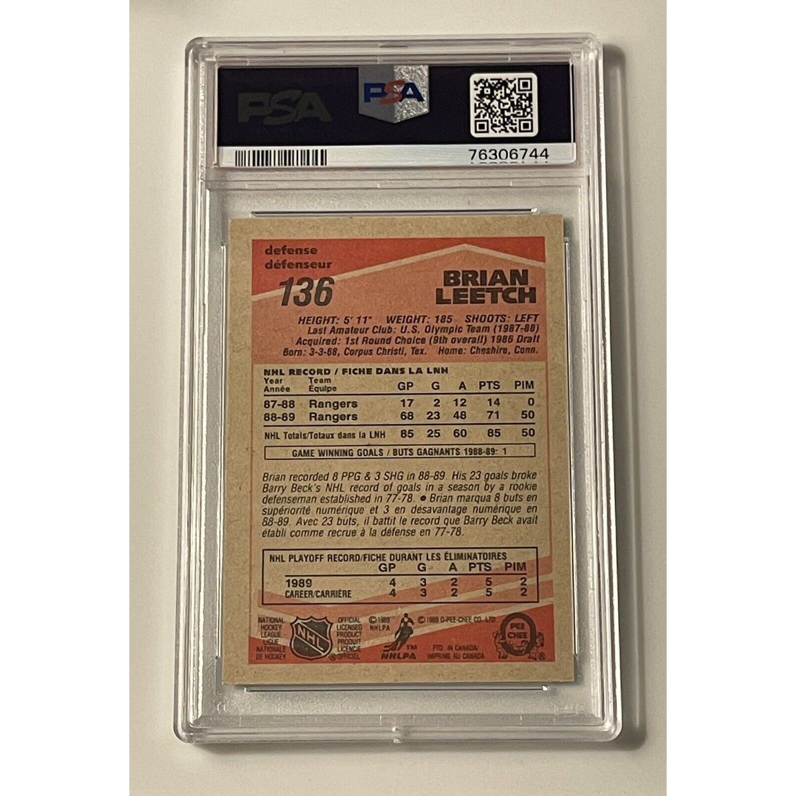 1989-90 O-Pee-Chee Brian Leetch* RC Hockey Card #136 NHL New York Rangers -PSA 7