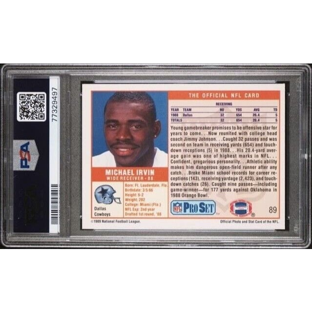 1989 Pro Set Michael Irvin RC NFL Card #89 Rookie Card HOF Dallas Cowboys PSA 7*