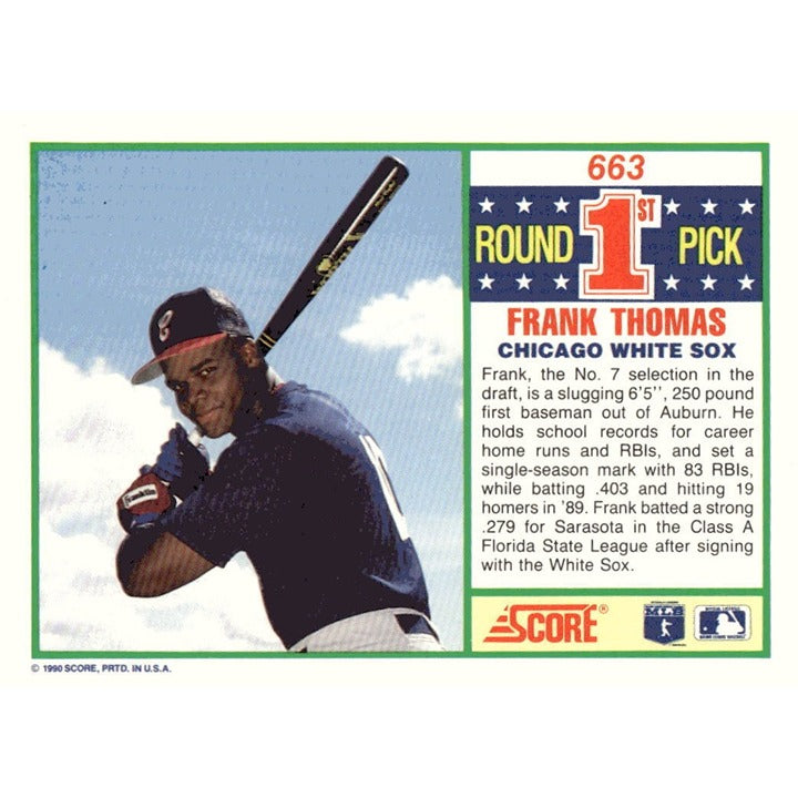 1990 Score Frank Thomas RC Draft Baseball Card #633 - MLB White Sox Hall Of Fame