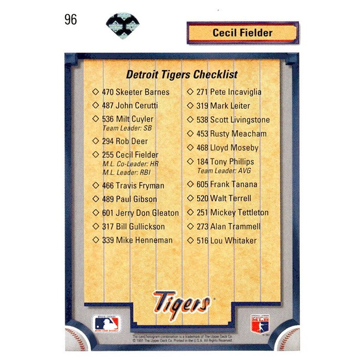 1992 Upper Deck Vintage Baseball Card Cecil Fielder MLB Detroit Tigers Card #96*