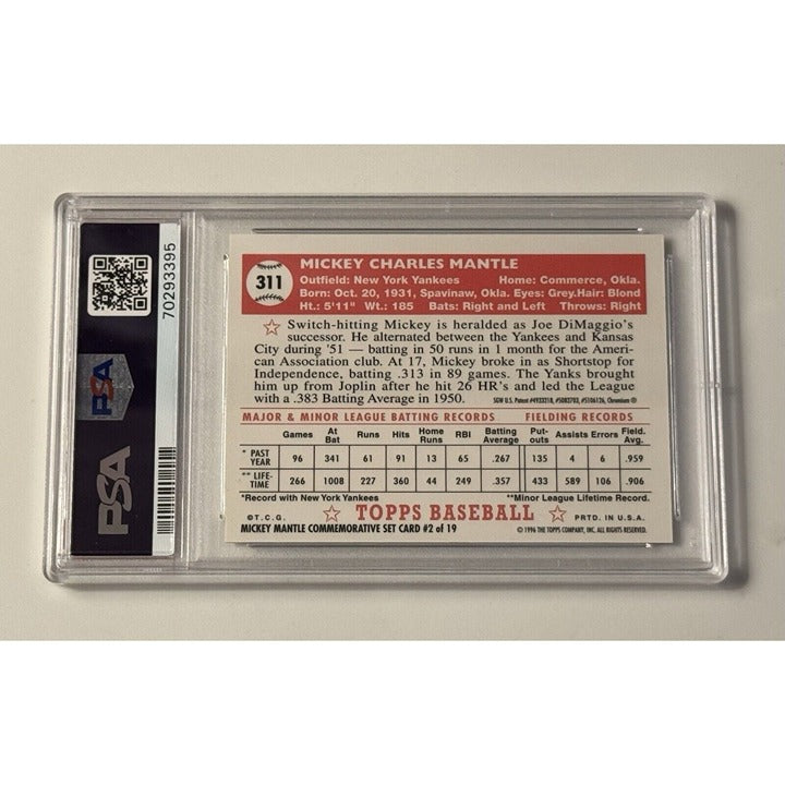 1996 Topps Finest Mickey Mantle 1952 Rookie Refractor Card #2 With Coating PSA 8