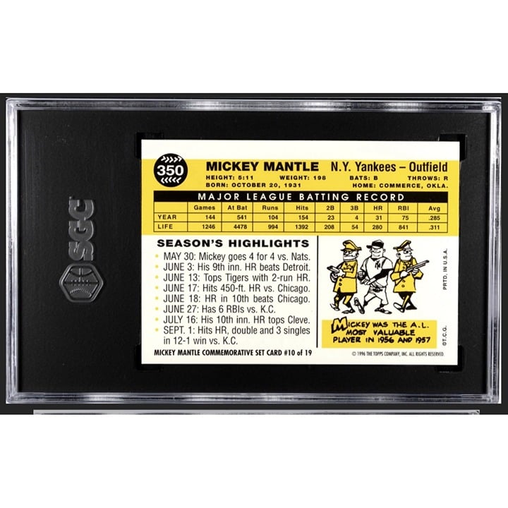 1996 Topps Mickey Mantle* 1960 Reprint #6 HOF NY Yankees Legend! Limited SGC 9.5
