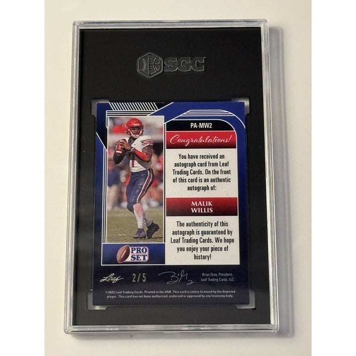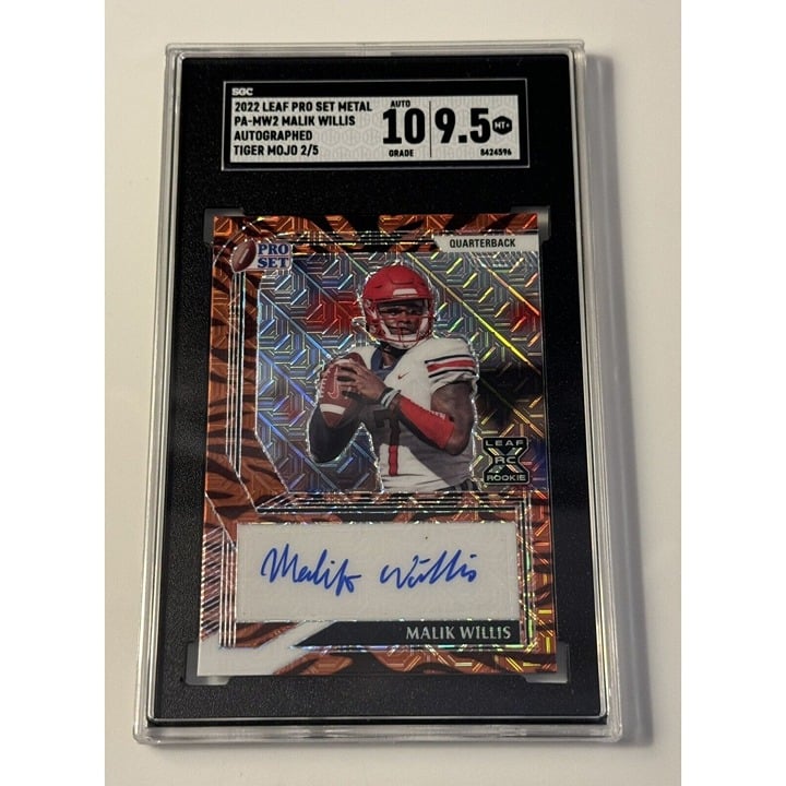 2/5* Malik Willis RC Auto 2022 LEAF PRO SET METAL #PA-MW2 Tiger Mojo NFL SGC 9.5