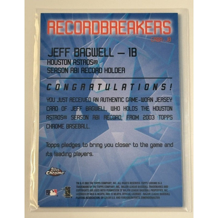 2003 Topps Team Finest JEFF BAGWELL Game Worn Jersey RB MLB Astros Refractor HOF