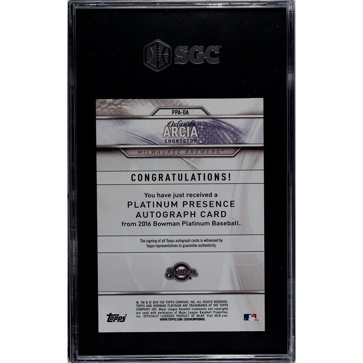 2016 Bowman Platinum Presence Orlando Arcia* 40/75 Auto* - Brewers/Braves #PP-15