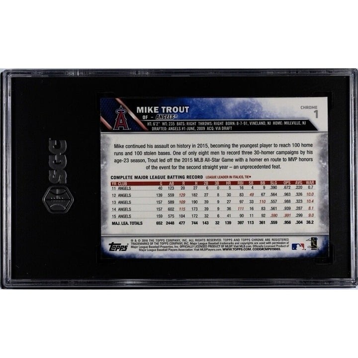 2016 Topps Chrome Mike Trout #1 Los Angeles Angels Iconic Baseball Card SGC 9.5*