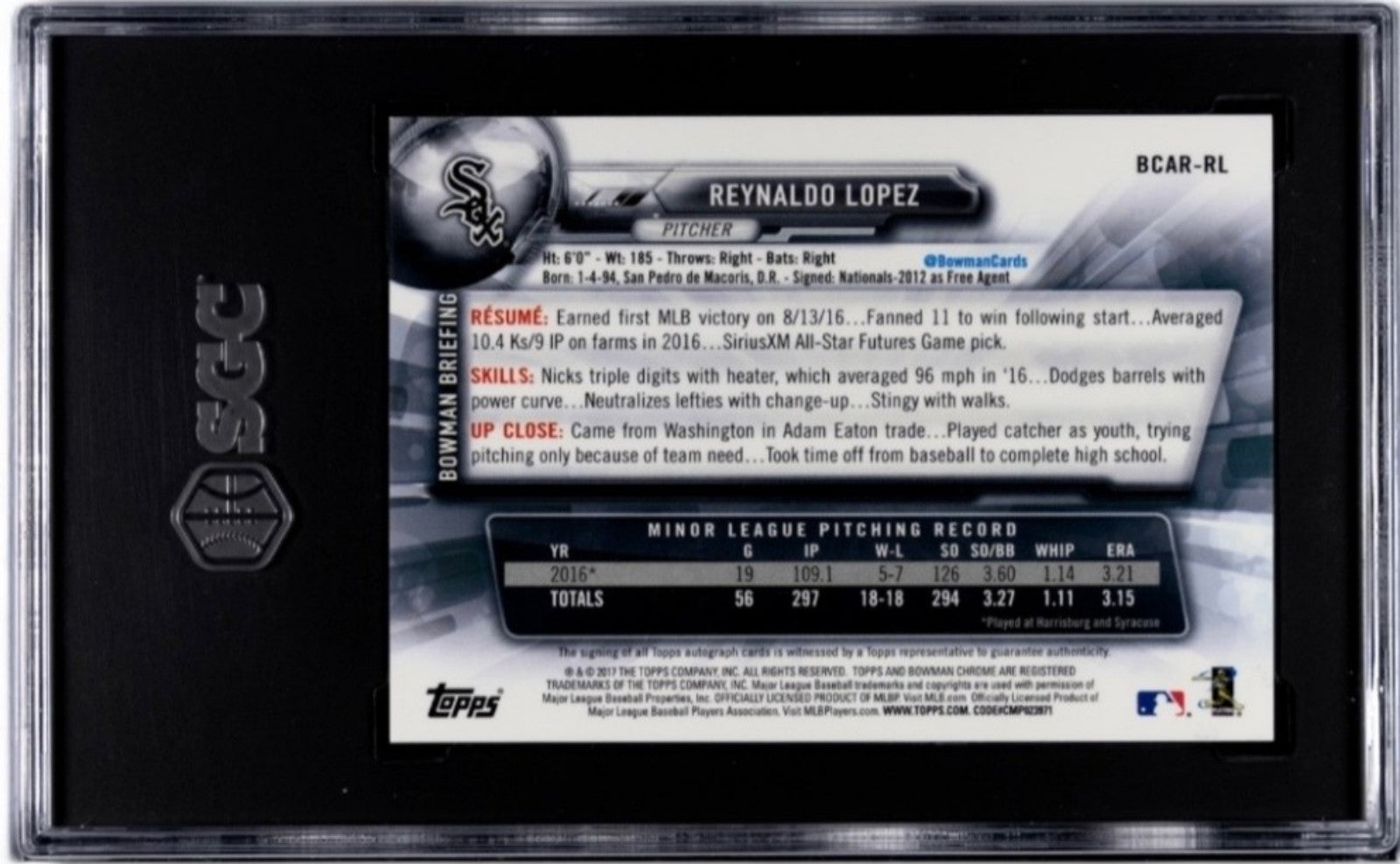 2017 BOWMAN CHROME BCAR-RL REYNALDO LOPEZ ROOKIE AUTO MLB ATL BRAVES SGC 10/Auth