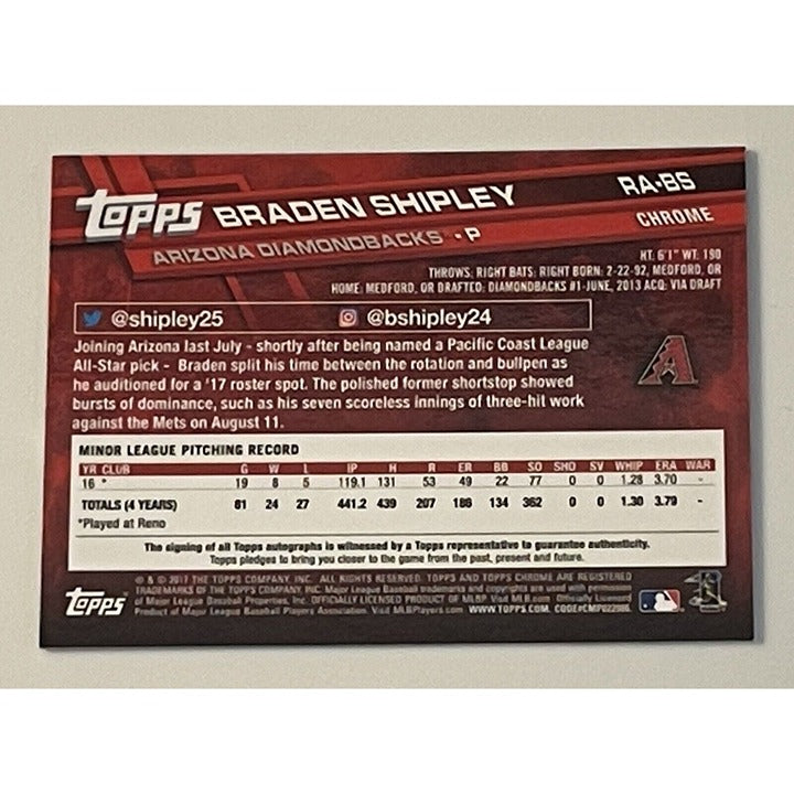2017 Topps Chrome - Braden Shipley* RC - Card #RA-BS - MLB Diamondbacks Baseball