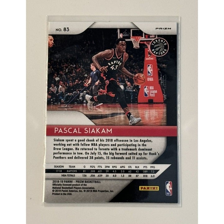 2018-19 Panini Prizm Silver Prizm Pascal Siakam - NBA Pacers/Toronto Raptors #83