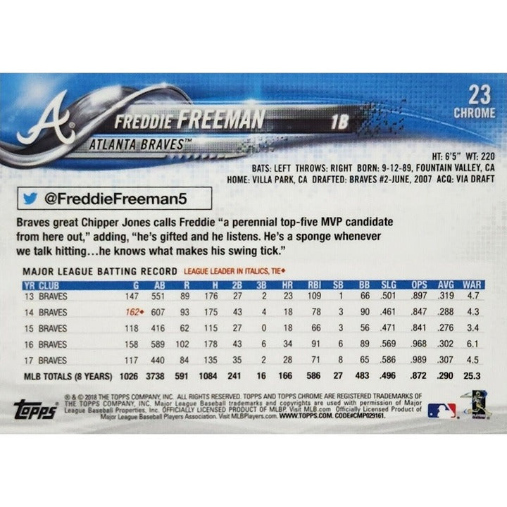 2018 Topps Chrome #23 Freddie Freeman* Atlanta Braves/Dodgers - MLB JUST PULLED!