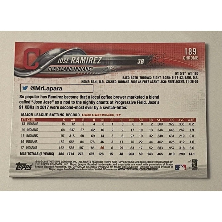 2018 TOPPS CHROME Jose Ramirez #189 Cleveland Indians/Guardians MLB JUST PULLED!