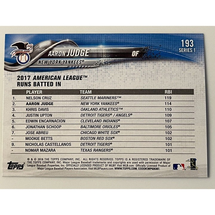 2018 Topps Series 1 Aaron Judge League Leaders 193 MLB New York Yankees ALL RISE