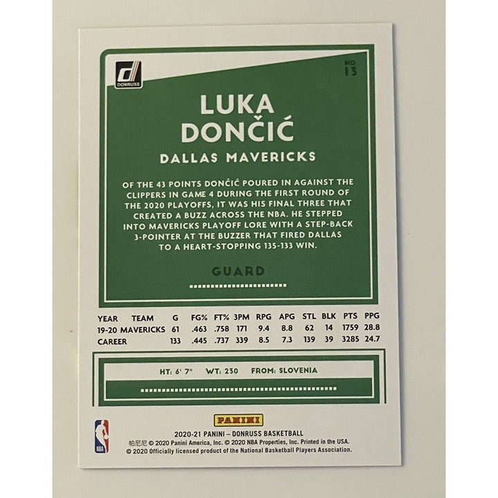 2020-21 Panini Donruss Optic Luka Doncic Card 13 NBA Dallas Mavericks Basketball