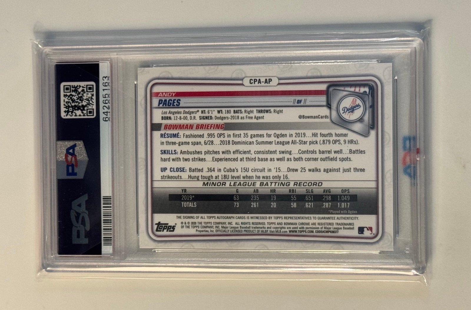 2020 BOWMAN CHROME ANDY PAGES PROSPECT RC AUTO Card #CPAAP PSA 10 - MLB Dodgers