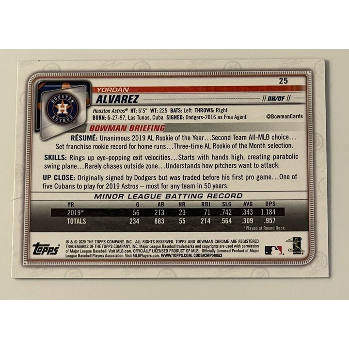 2020 BOWMAN CHROME Yordan Alvarez* RC MLB - HOUSTON ASTROS* - ROOKIE Card - #25*
