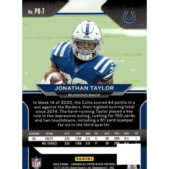 2020 Panini Chronicles - Jonathan Taylor* Prizm Black RC - NFL Colts Card #PB-7