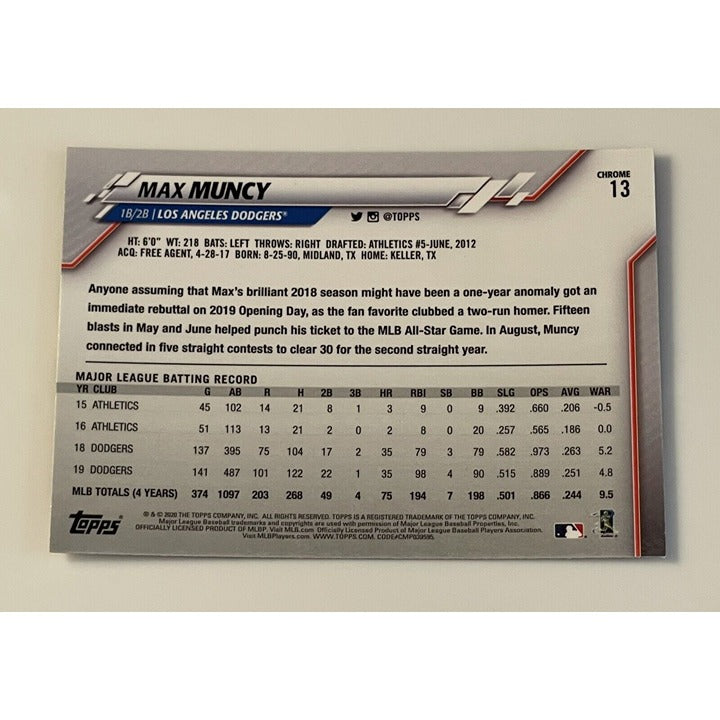 2020 Topps Chrome - Max Muncy* - MLB Los Angeles Dodgers* - NL Baseball Card #13