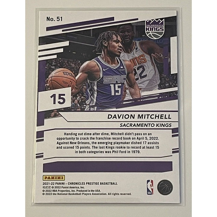 2021-22 Panini Chronicles Prestige #51 Davion Mitchell Kings RC Basketball Card*