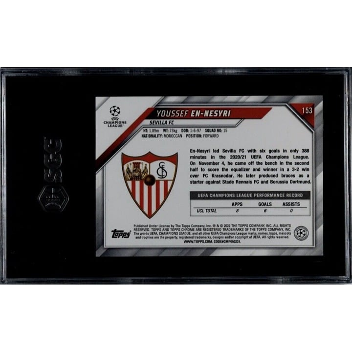 2021-22 T Chrome UEFA Black/White RayWave Refrac Youssef En-Nesyri #153 SGC 10*