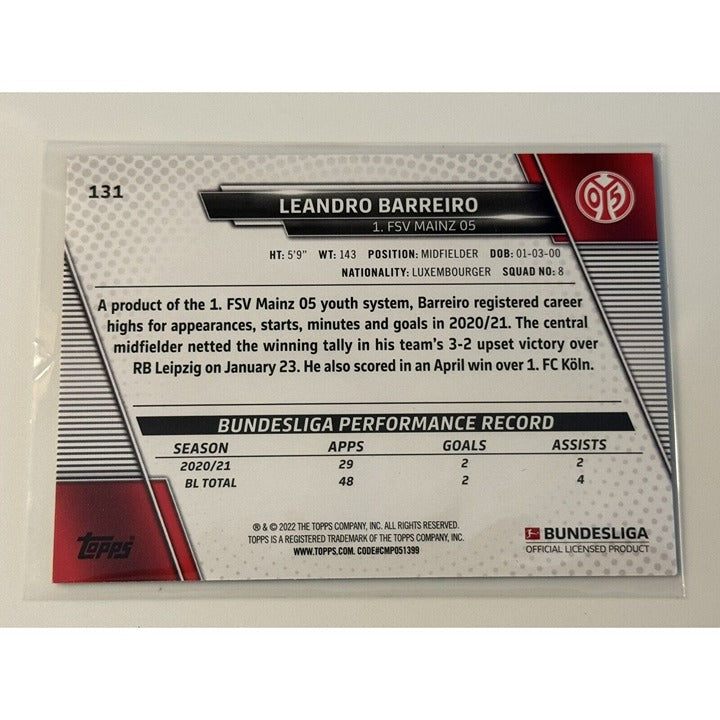 2021-22 Topps Bundesliga Leandro Barreiro Refractor Futbol Card 131 Mainz Soccer