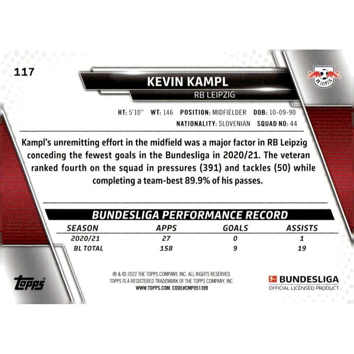 2021-22 Topps Bundesliga Soccer Set - Kevin Kampl* RB - Leipzig Futbol Card #117