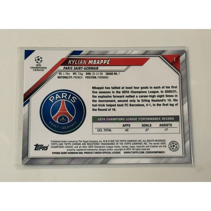 2021-22 Topps Chrome Sapphire UEFA Kylian Mbappe Futbol Card 1 PSG France Soccer