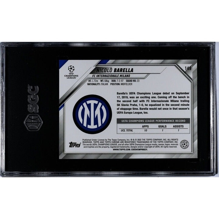 2021-22 Topps Chrome UCL #149 Nicolo Barella Base FC International Milano SGC 10