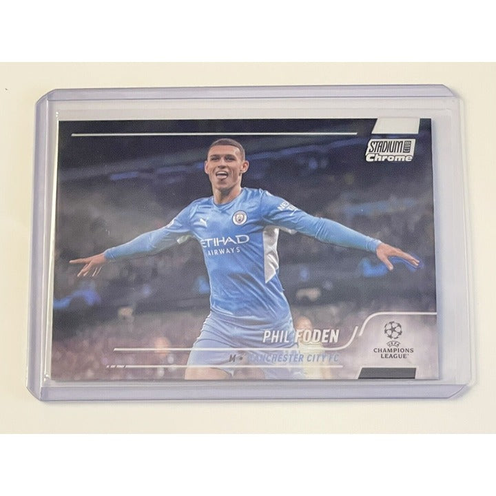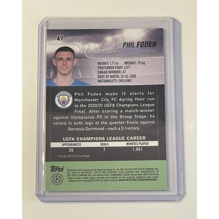 2021-22 - Topps Stadium Club - Chrome UEFA Phil Foden Soccer Blue Prism Card #47