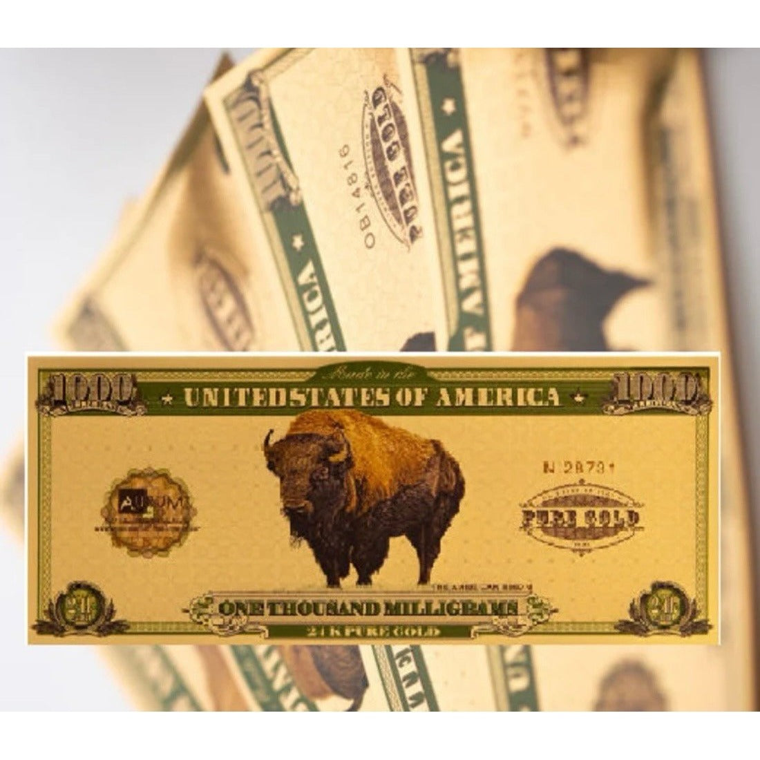 2021 Aurum 1000 Milligrams 1 Gram Pure Gold Buffalo Bison Foil Note Collectible!