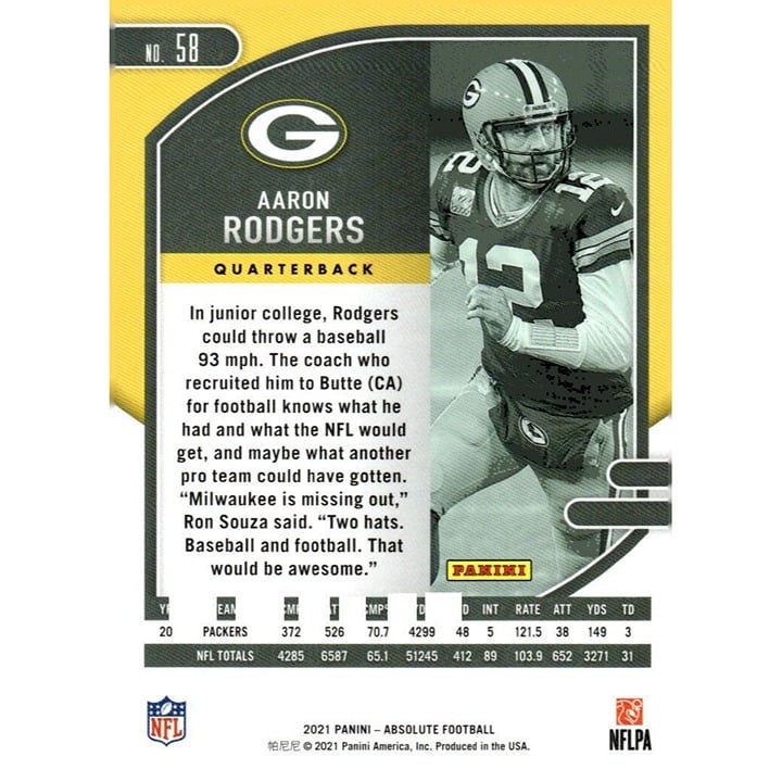 2021 Panini Absolute NFL Parallel Football Card #58 Aaron Rodgers Green NY JETS*