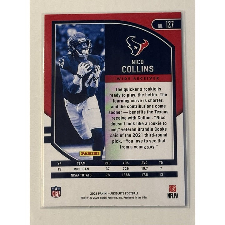 2021 Panini Absolute Rookies Nico Collins RC* NFL AFC Houston Texans - Card #127