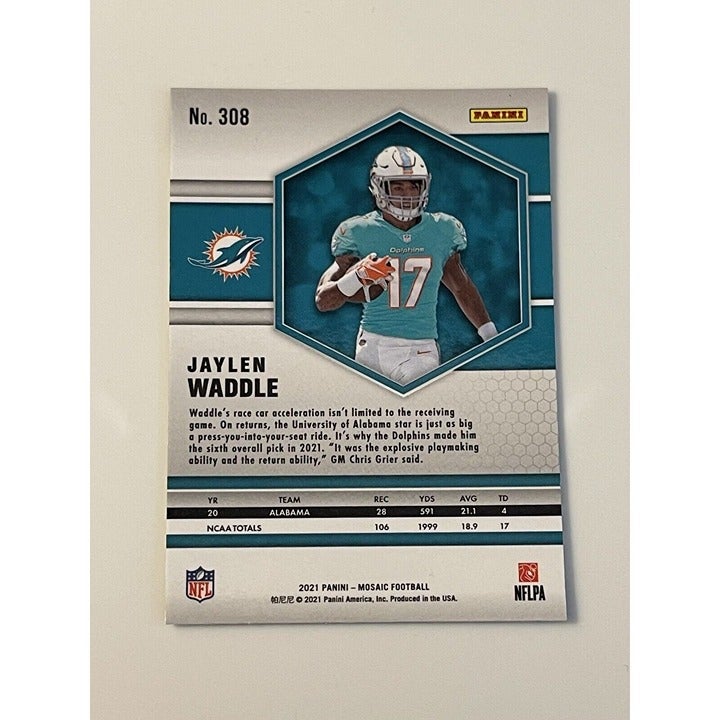 2021 Panini Mosaic JAYLEN WADDLE RC Card #308-NFL Miami Dolphins Football Rookie