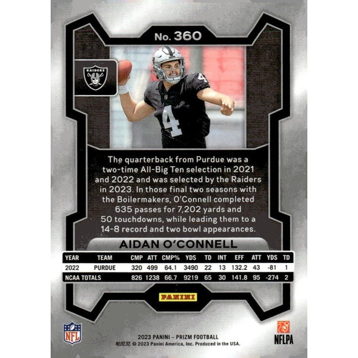 2021 Panini Prizm - Aiden O'Connell* Debut Signatures - NFL LV Raiders Card #360